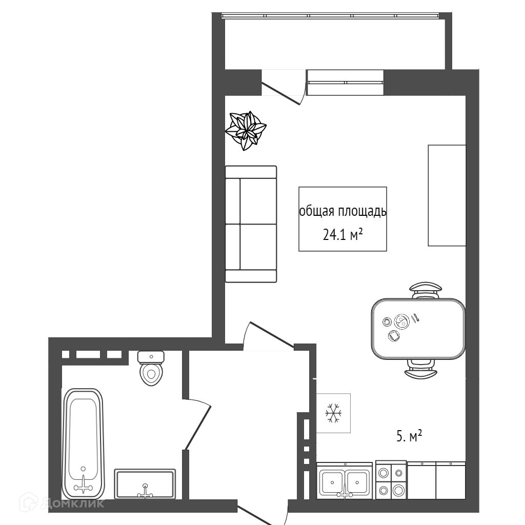 Общая площадь 24.1 м2