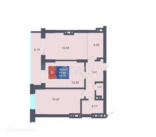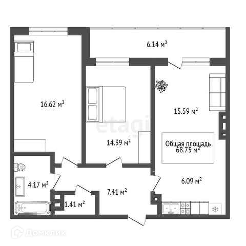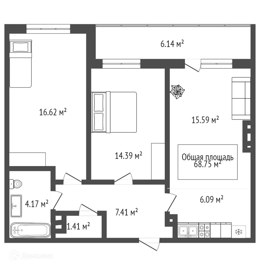 Общая площадь 69 м2