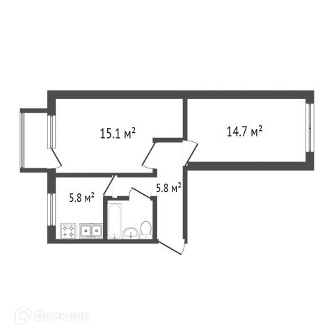 Общая площадь 44 м2
