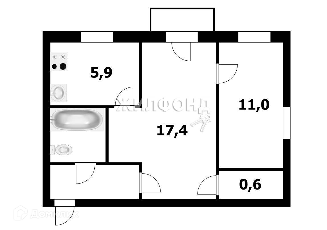 2-комнатная квартира, 42.4 м2, этаж 3 / 5, на продажу в Новосибирске, Часовая улица, 15