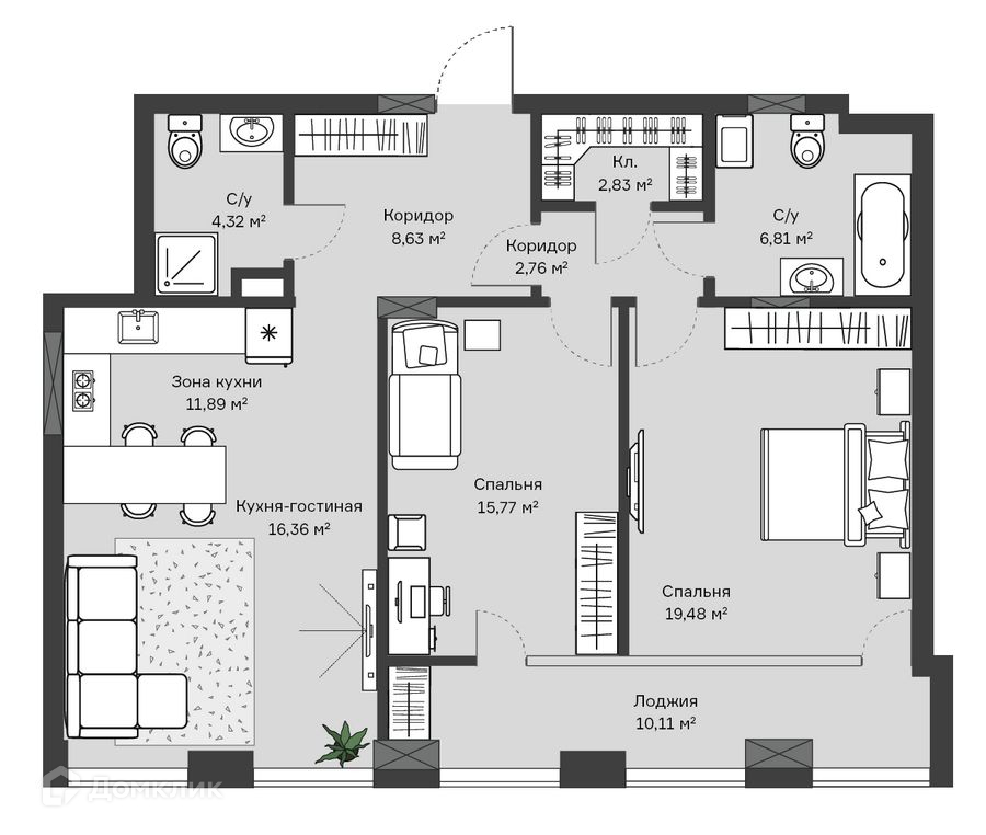 Общая площадь 88.85 м2