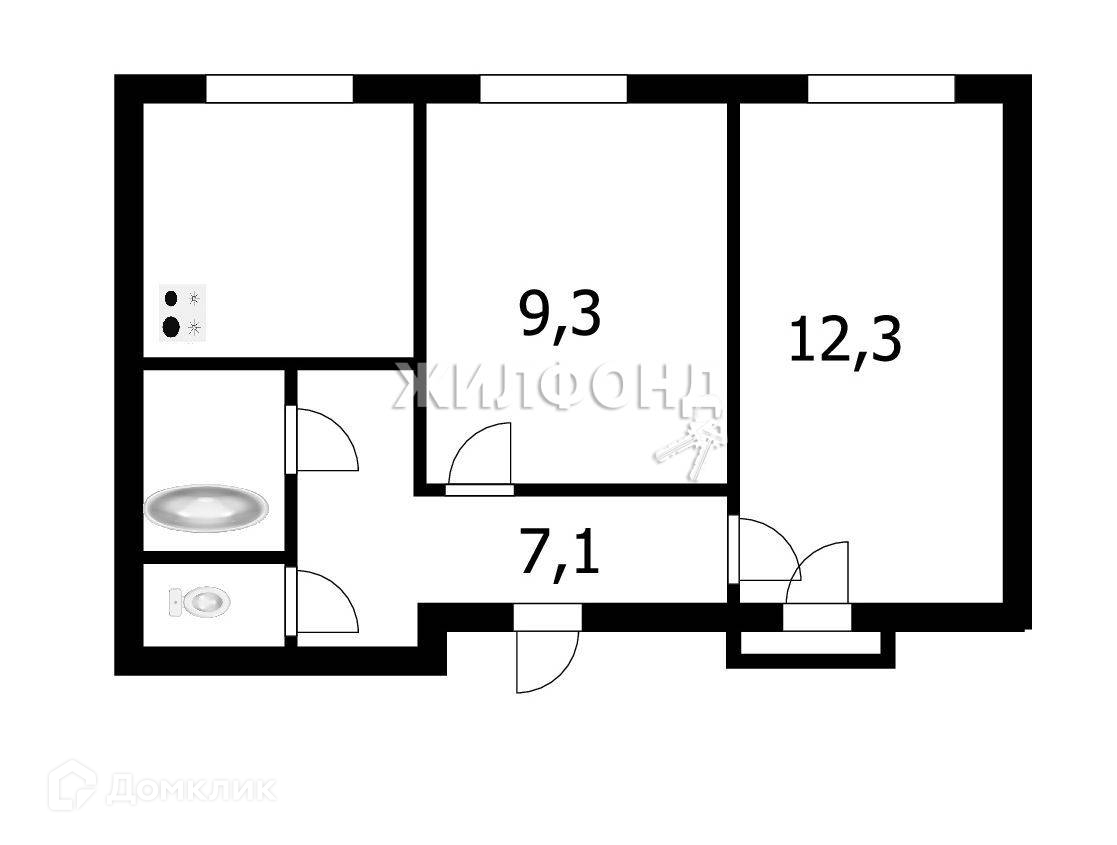 2-комнатная квартира, 38.3 м2, этаж 5 / 5, на продажу в Новосибирске, улица Фрунзе, 8