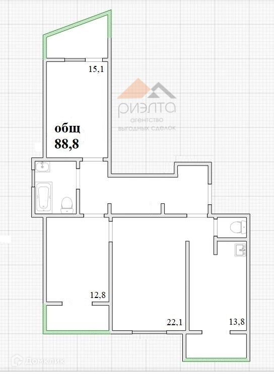 Общая площадь 88.8 м2