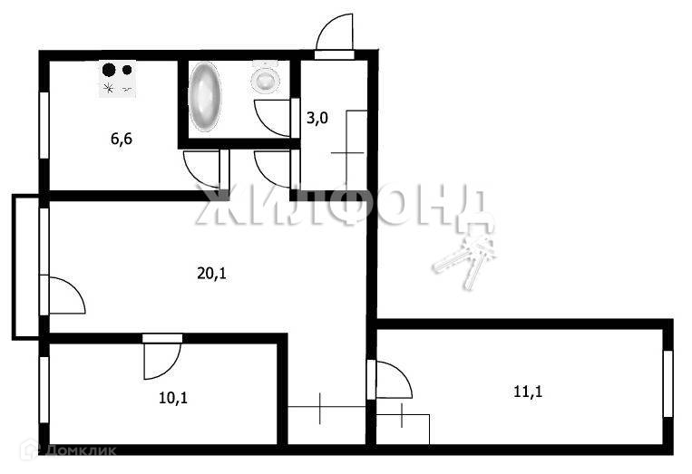 3-комнатная квартира, 56.1 м2, этаж 3 / 5, на продажу в Новосибирске, улица Панфиловцев, 3