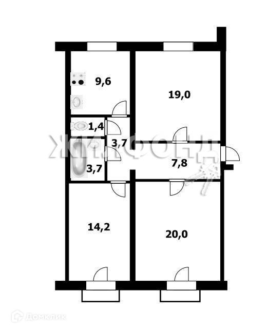 3-комнатная квартира, 79.4 м2, этаж 3 / 3, на продажу в Новосибирске, улица Дениса Давыдова, 6