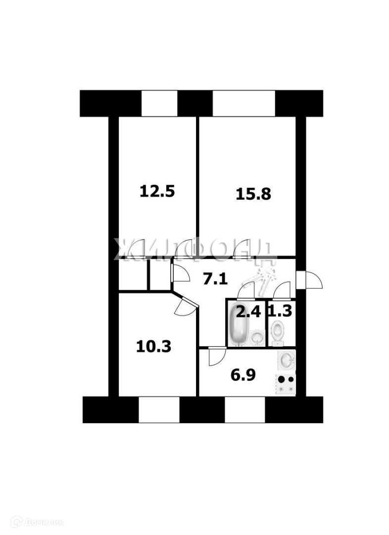 Общая площадь 57.7 м2