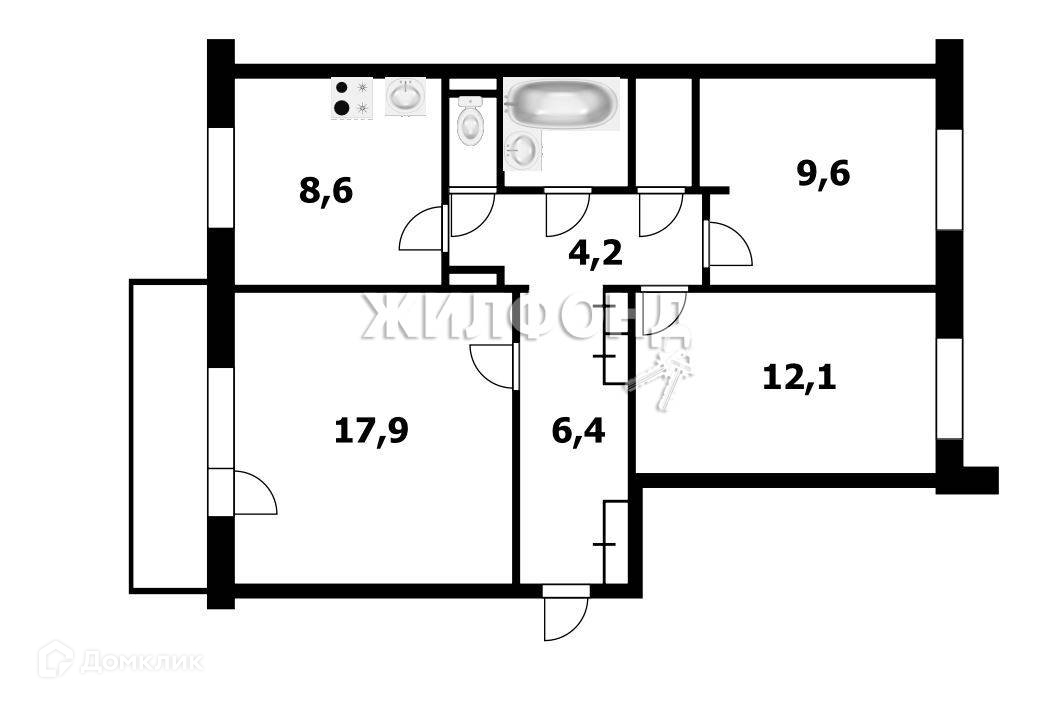 3-комнатная квартира, 64.3 м2, этаж 8 / 9, на продажу в Новосибирске, улица Молодости, 24