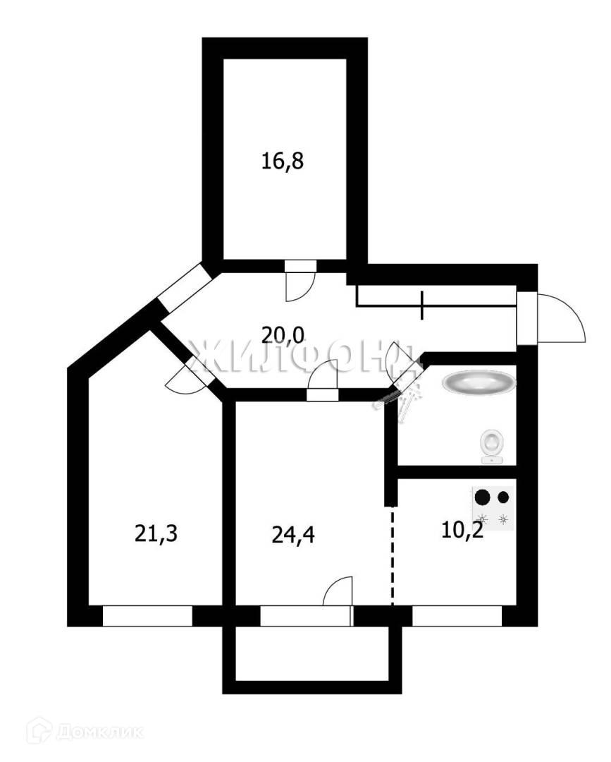 Жилая площадь 62.5 м2
