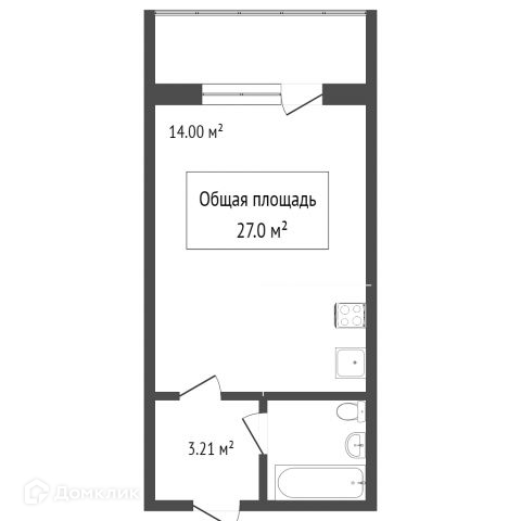 Общая площадь 27.7 м2