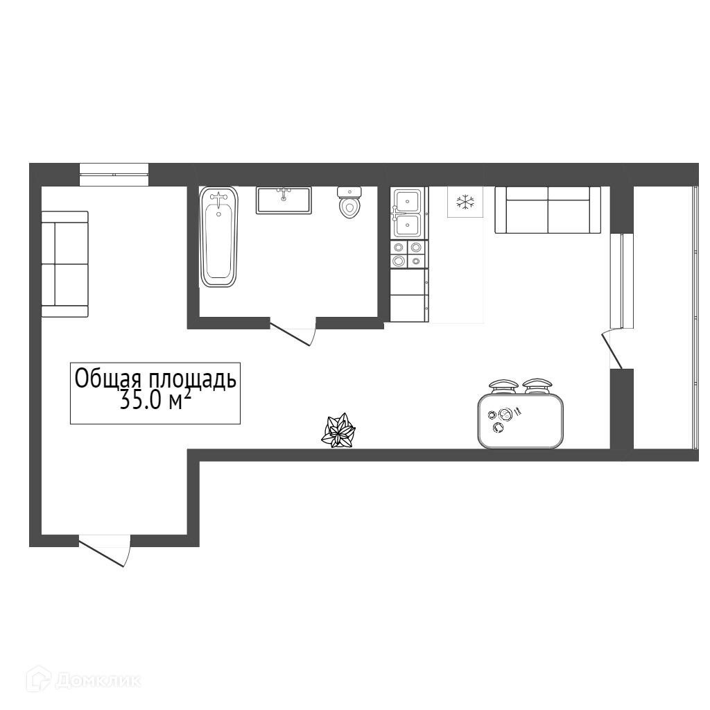 Общая площадь 35 м2