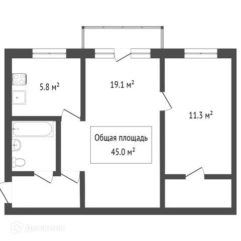 Общая площадь 46 м2