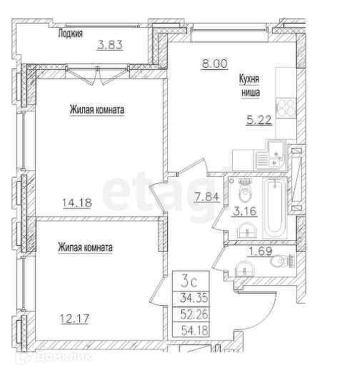 Общая площадь 52 м2