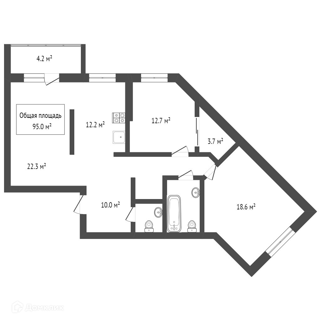 Общая площадь 95 м2