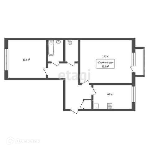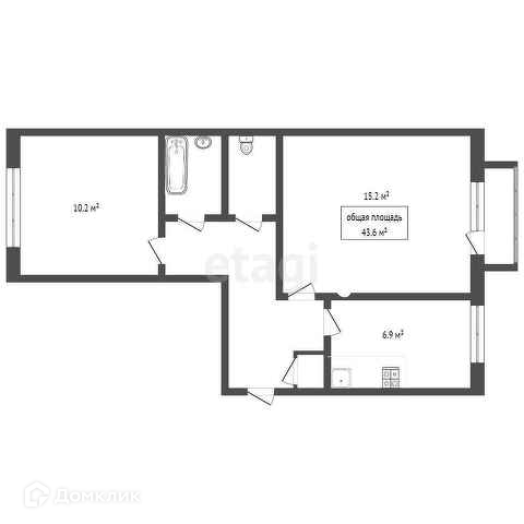 Общая площадь 43.6 м2