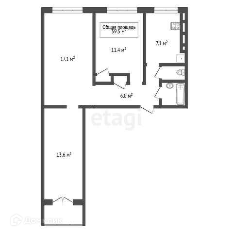 Общая площадь 59.5 м2
