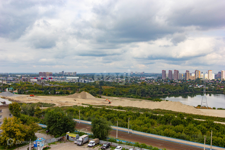 - вид из квартиры на придомовую территорию с детской площадкой, на два моста, на реку Обь и озеро.