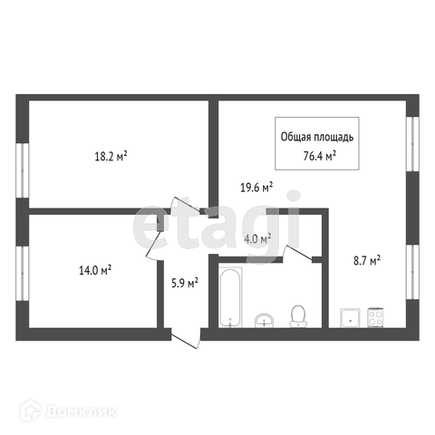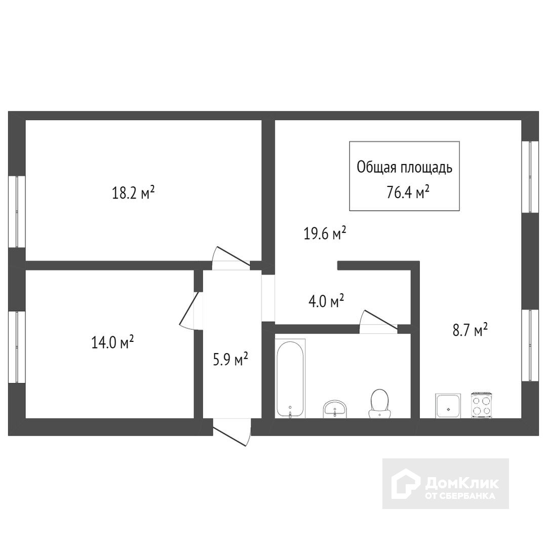 Общая площадь 76.4 м2