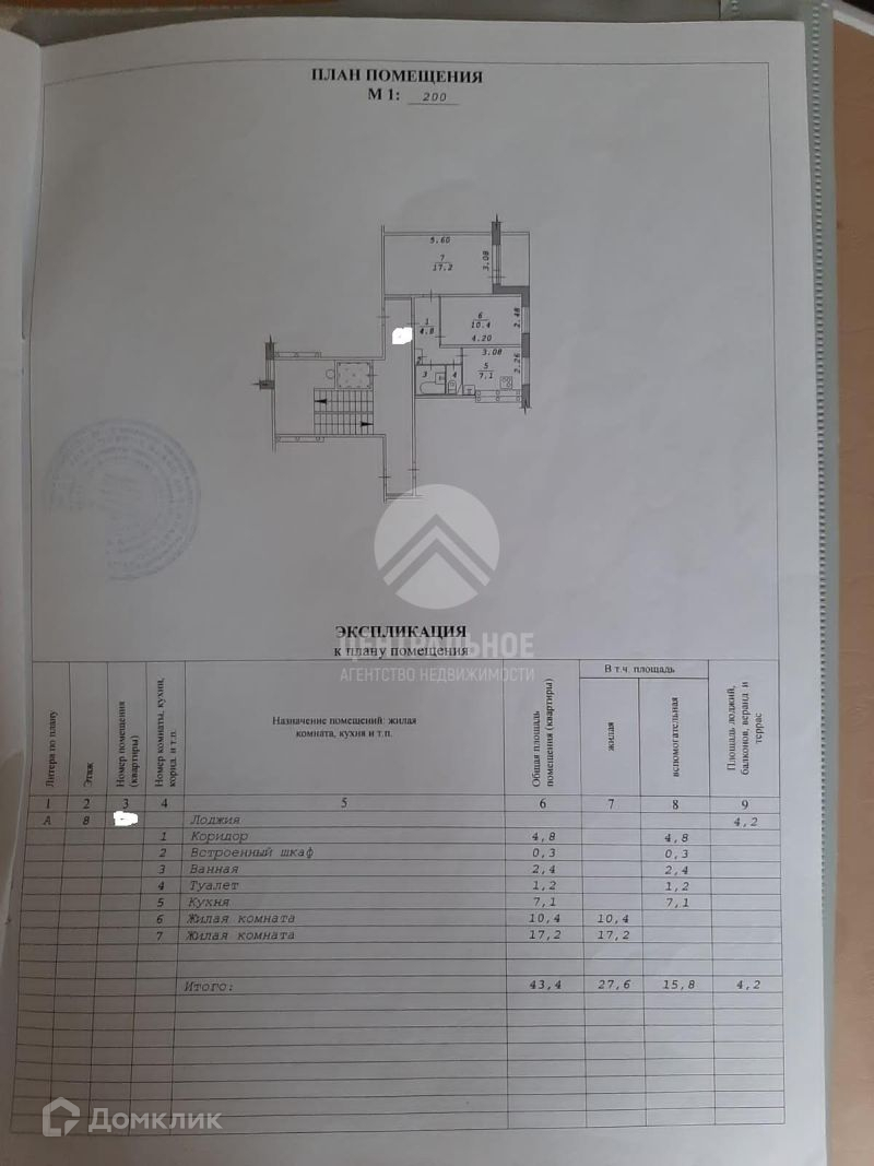Общая площадь 43.4 м2
