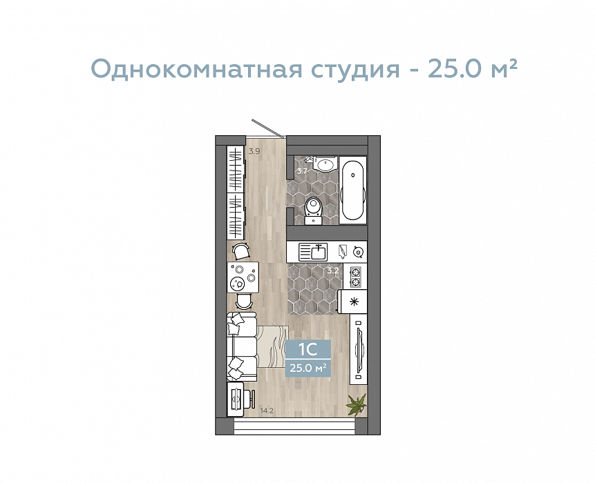 Общая площадь 25.4 м2