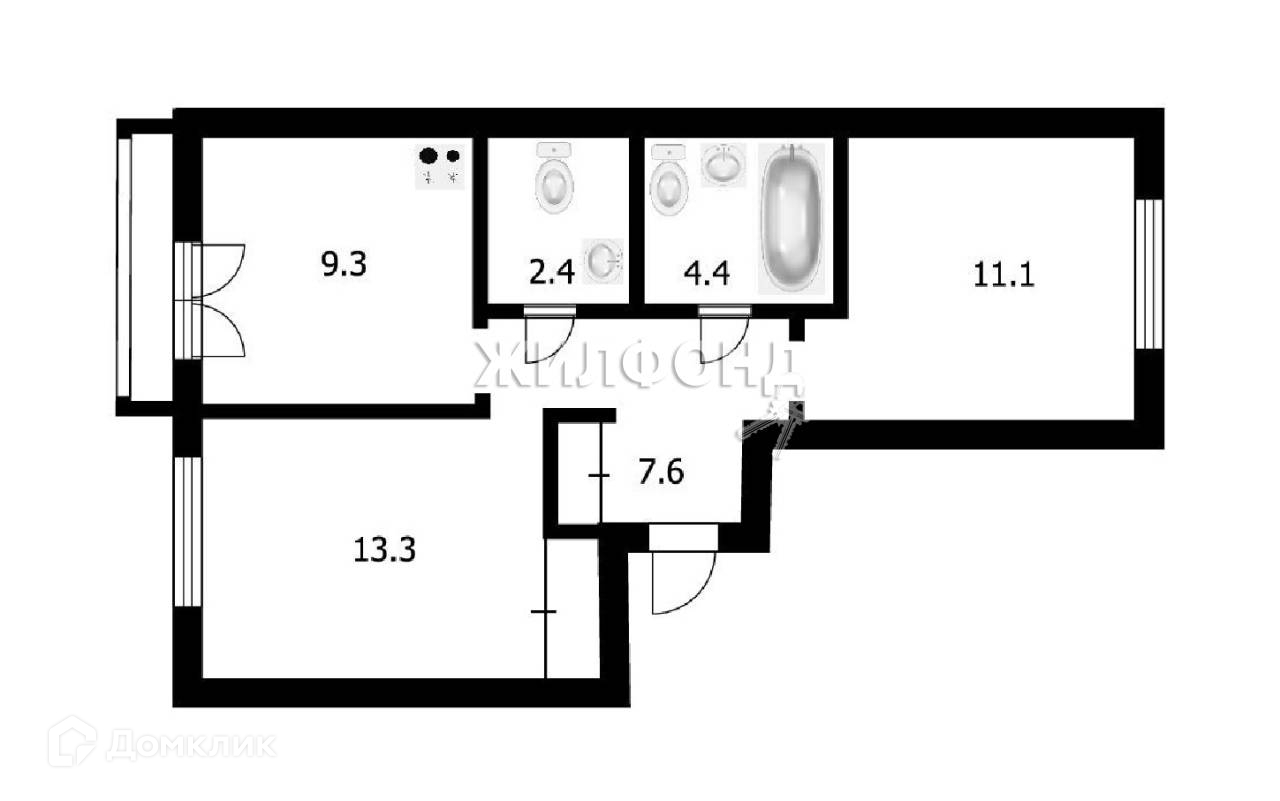 2-комнатная квартира, 47.5 м2, этаж 5 / 9, на продажу в Новосибирске, улица Дунаевского, 14/3