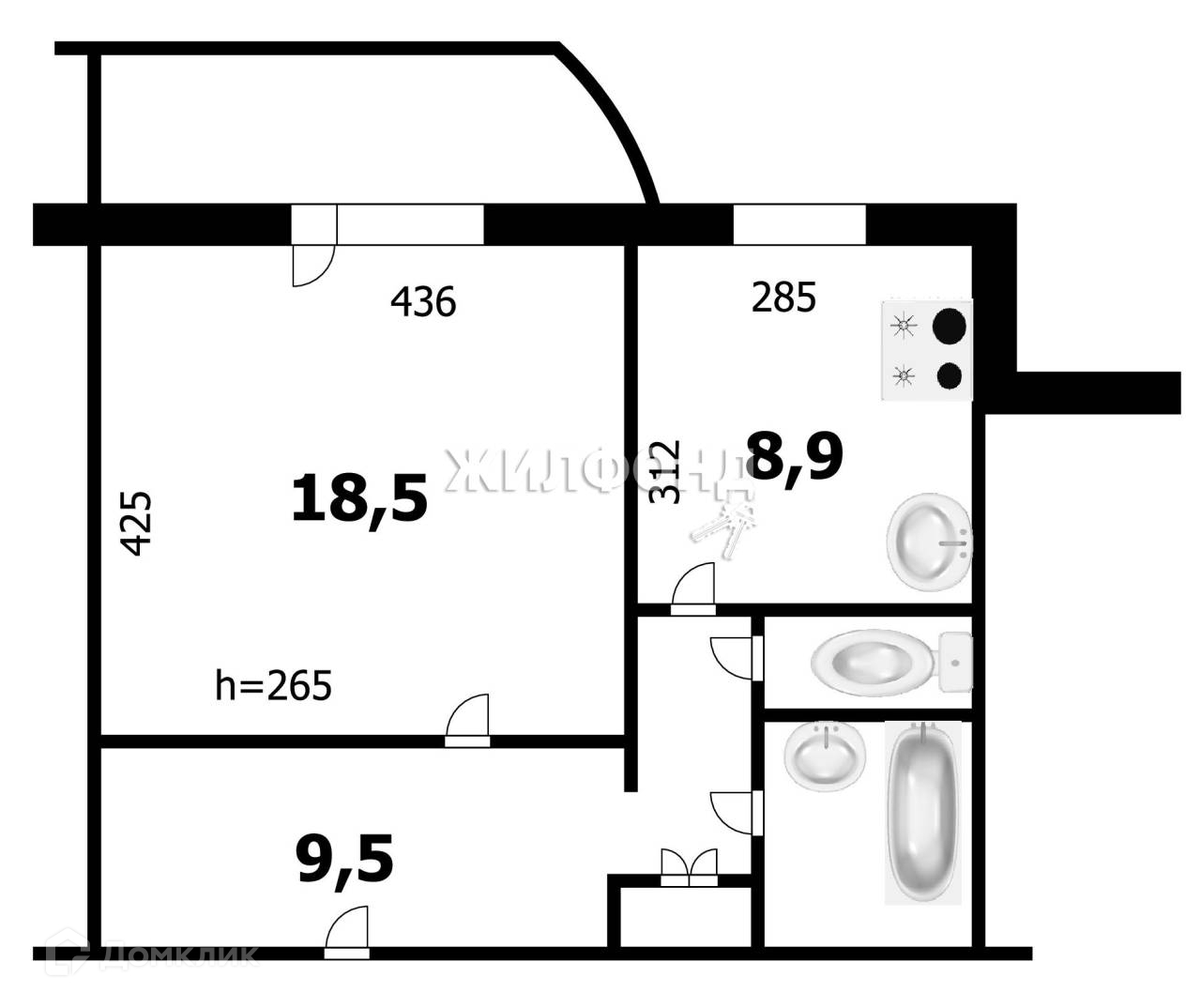 Общая площадь 43 м2