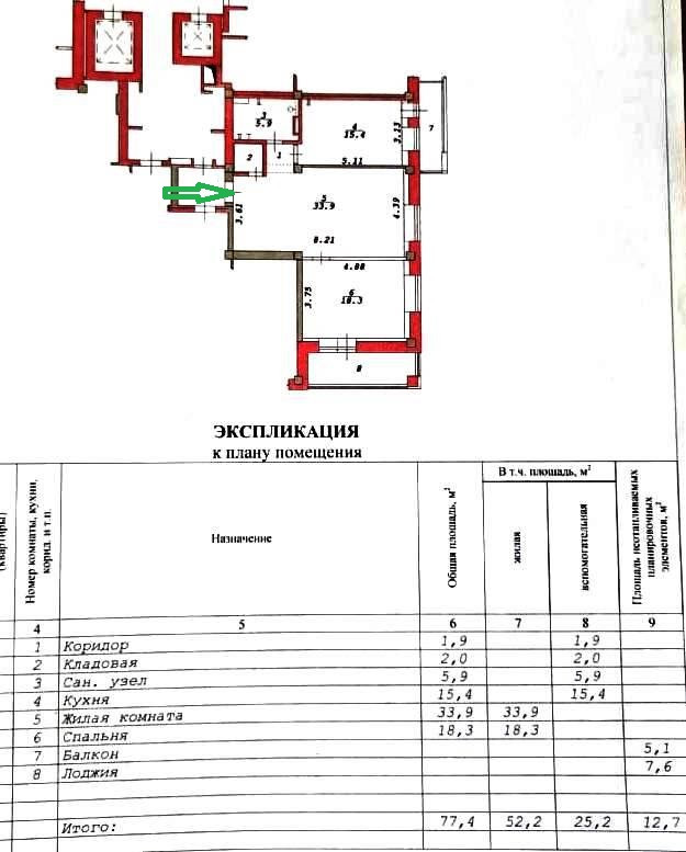 К квартире прилагается кладовая, расположенная на этаже - площадью 3 кв.м.