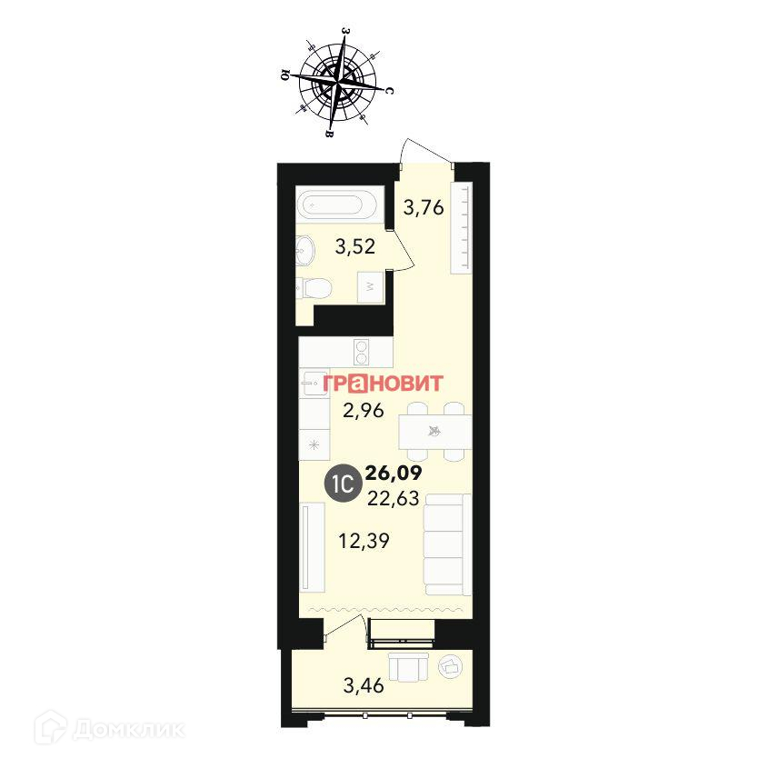 Общая площадь 26 м2