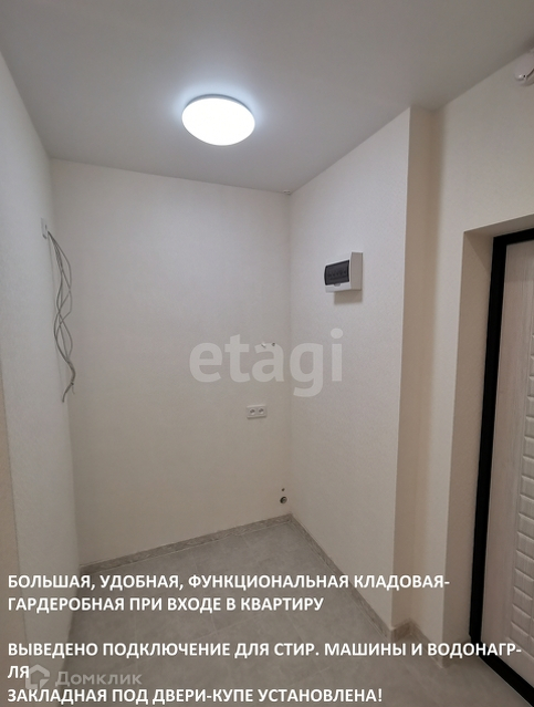 В квартире большой коридор, где возможно разместить много мест для хранения.
