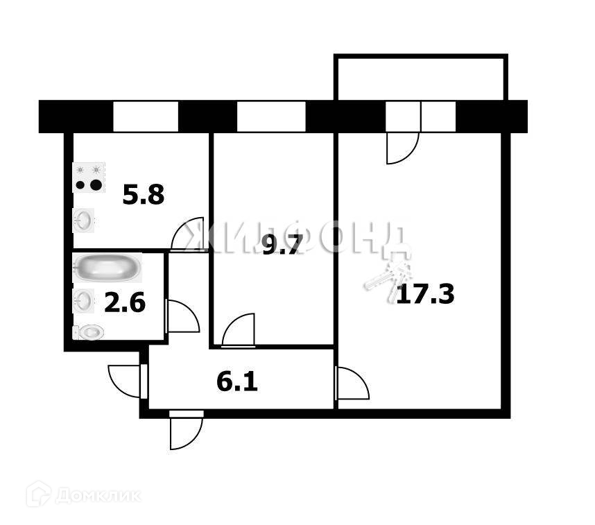 2-комнатная квартира, 42.4 м2, этаж 4 / 5, на продажу в Новосибирске, Новогодняя улица, 20
