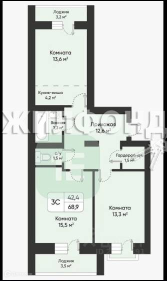 Общая площадь 65.7 м2