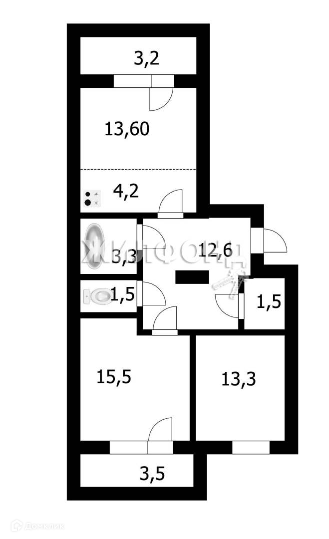 2-комнатная квартира, 65.7 м2, этаж 3 / 4, на продажу в Новосибирске, улица Заслонова, 13/6