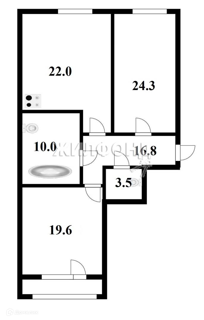 Жилая площадь 43.9 м2