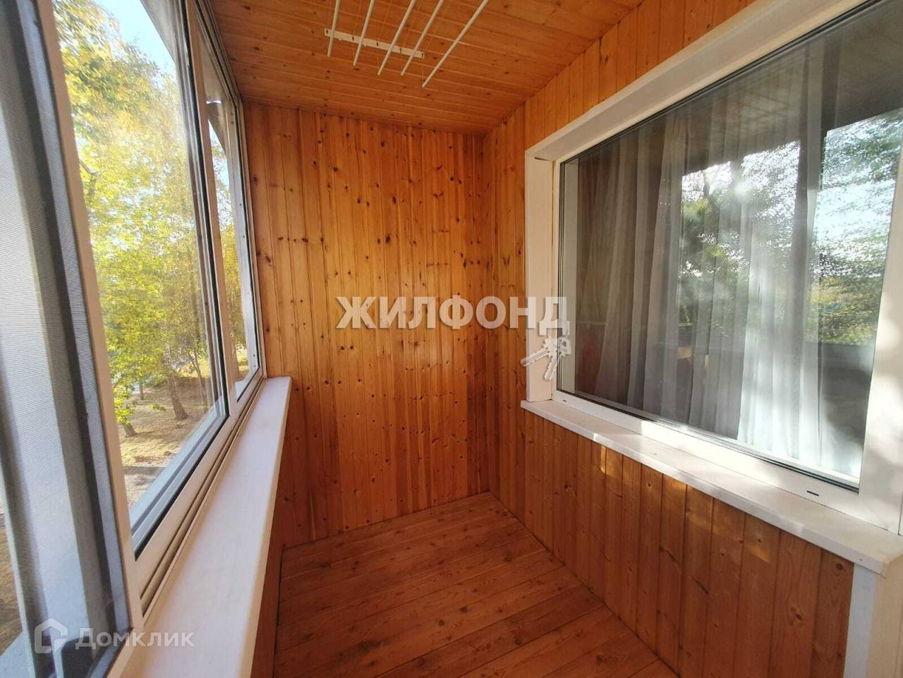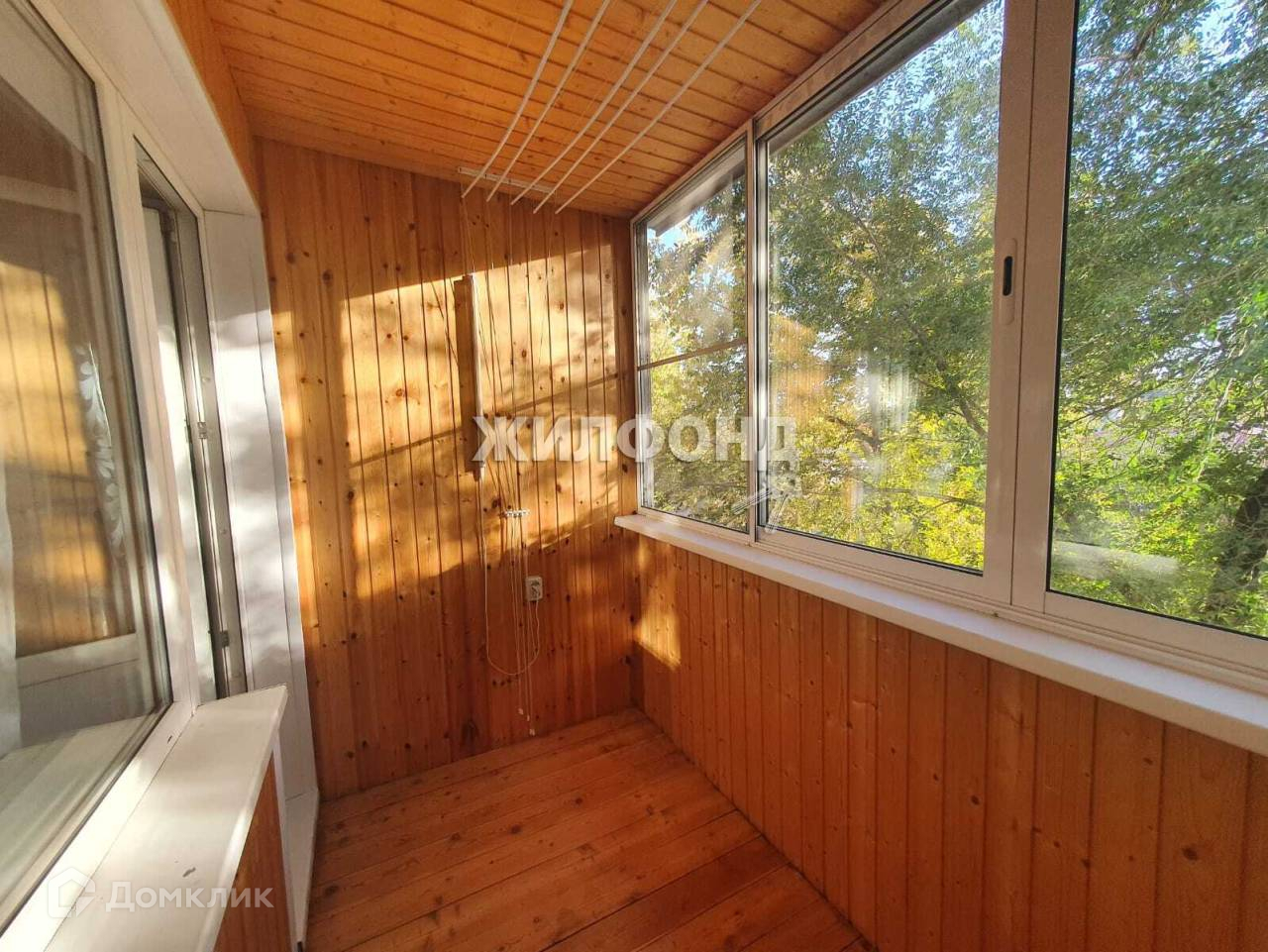 - лоджия остеклена и обшита рейкой.