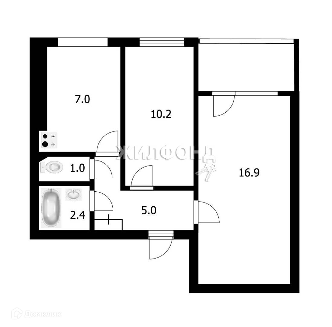 2-комнатная квартира, 42.8 м2, этаж 2 / 9, на продажу в Новосибирске, Московская улица, 165