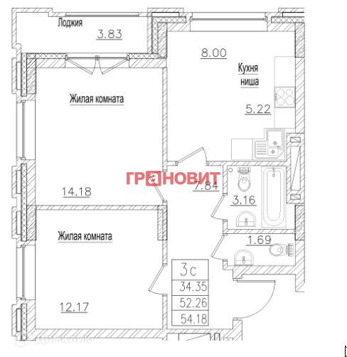Общая площадь 52.2 м2