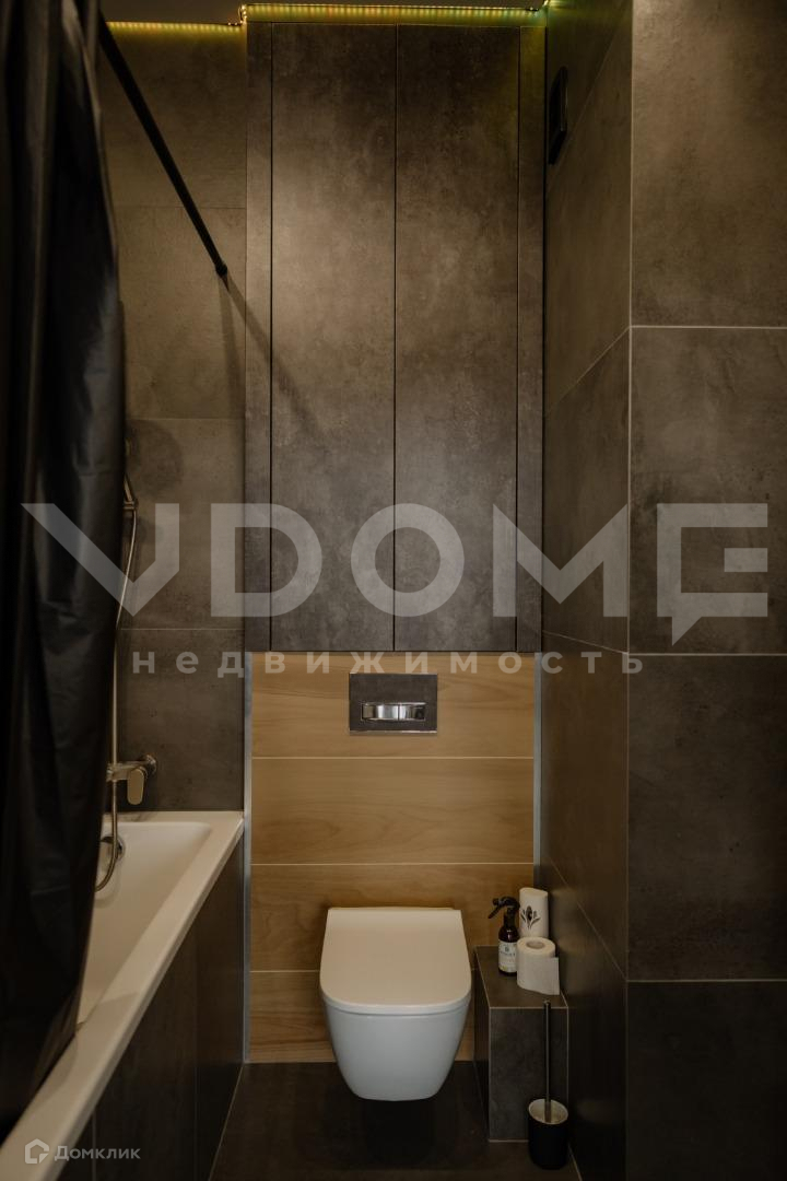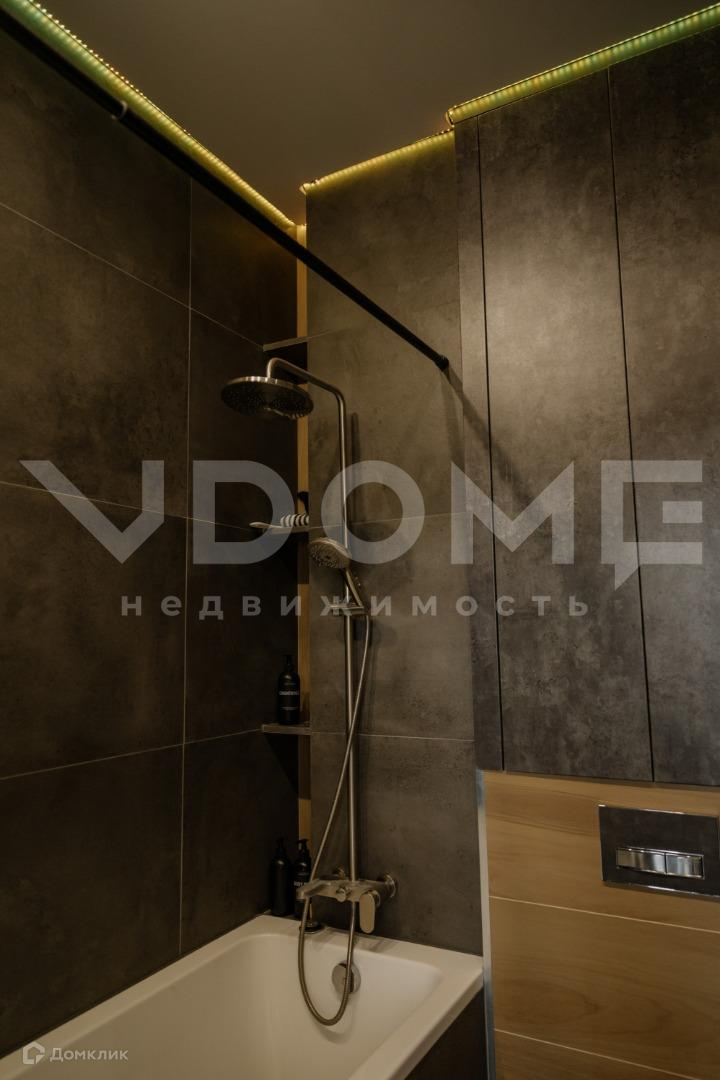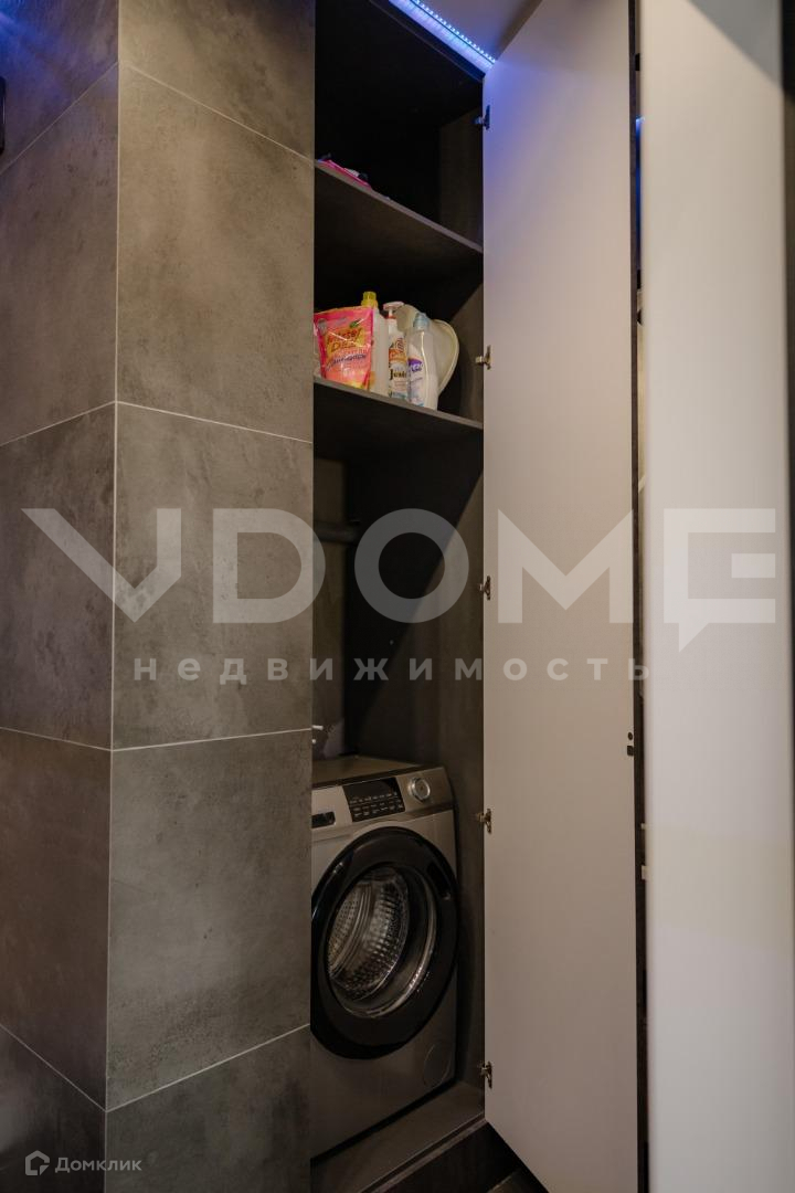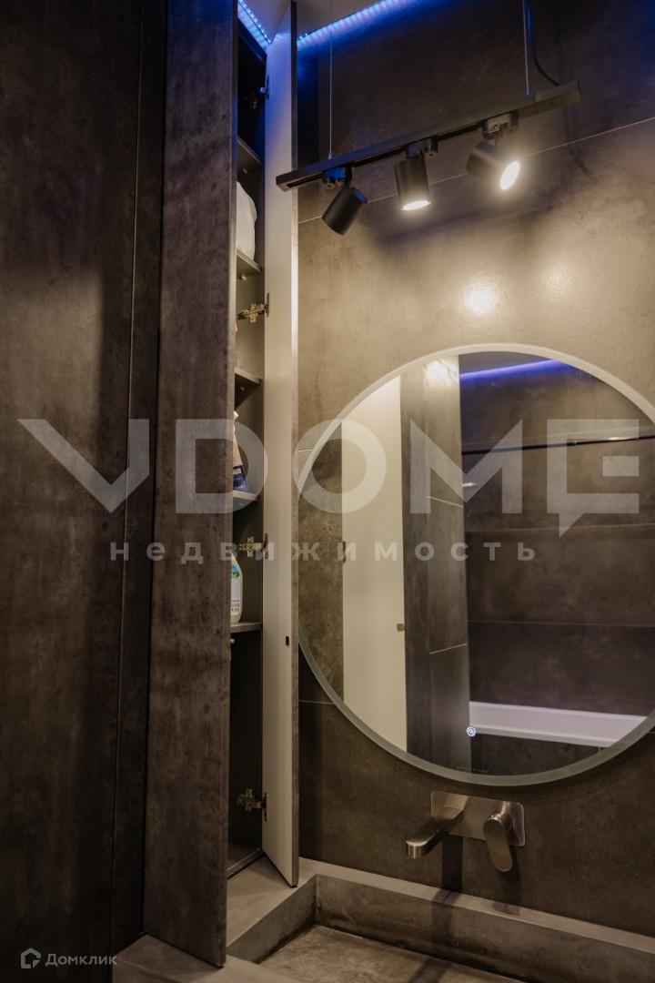 - в ванной все системы хранения скрыты, есть специальная ниша под машинку и сушилку, парящий потолок с диодной подсветкой со сменой цветов