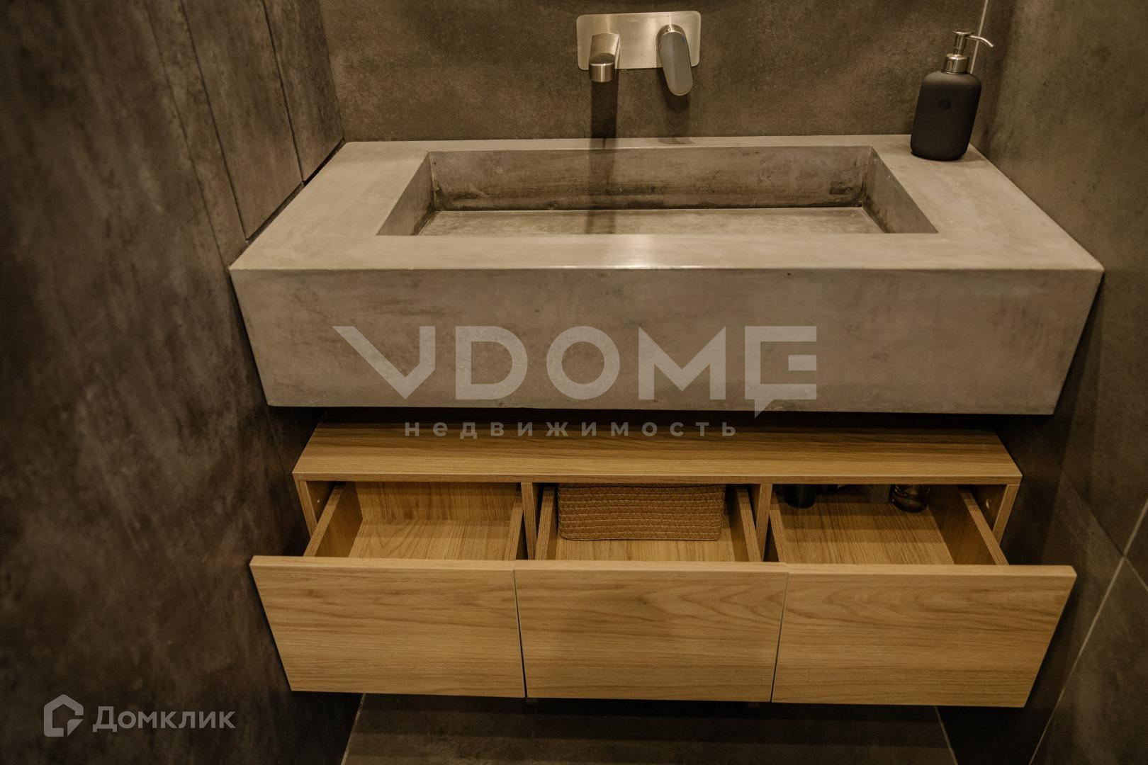 - установлена розетка сразу внутри ящика под раковиной: очень удобно, открыл ящик, взял в руку фен и сразу можешь сушить волосы