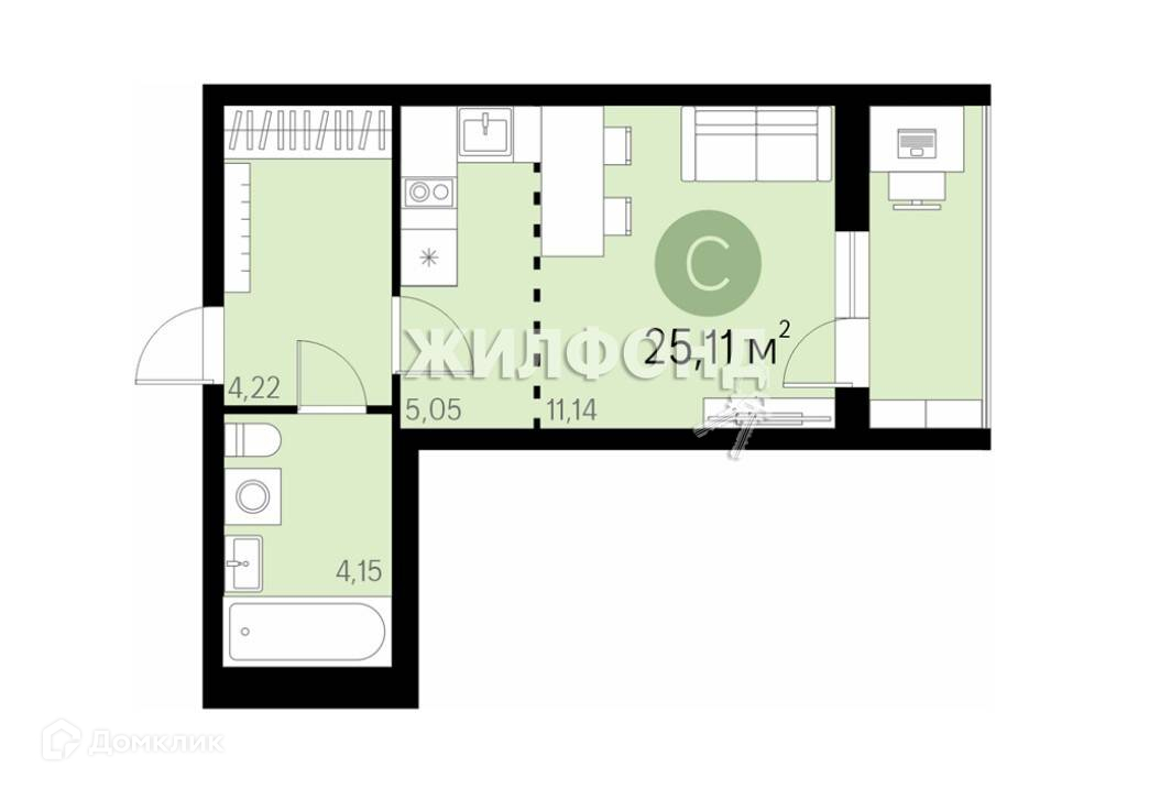 Общая площадь 26 м2