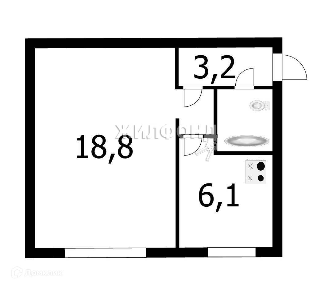 1-комнатная квартира, 31.1 м2, этаж 1 / 5, на продажу в Новосибирске, Вертковская улица, 36/1