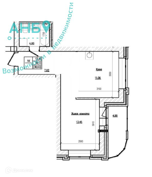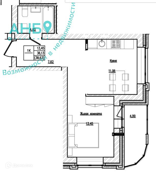 Общая площадь 38 м2