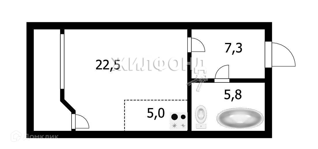 Жилая площадь 22.5 м2