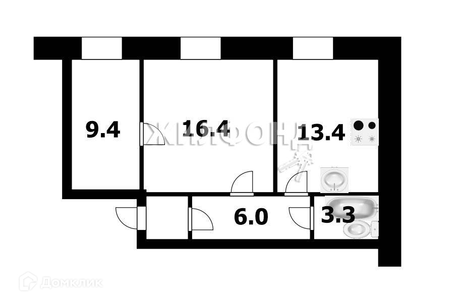 2-комнатная квартира, 48.5 м2, этаж 1 / 2, на продажу в Новосибирске, Ереванская улица, 13