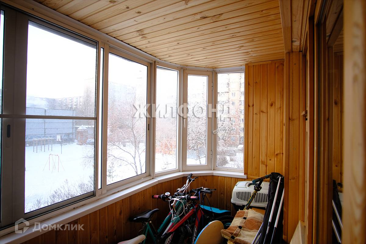 - Вместительный балкон 5 м кв., с глубоким вместительным шкафом обшит вагонкой, установлены пластиковые окна.