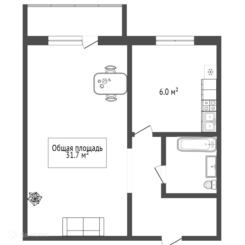Общая площадь 31.7 м2