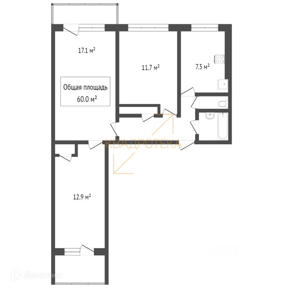 Общая площадь 62 м2