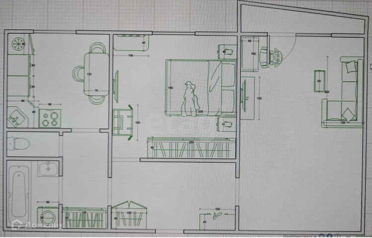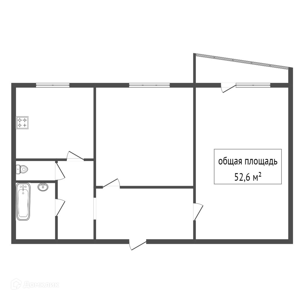 Общая площадь 52.6 м2