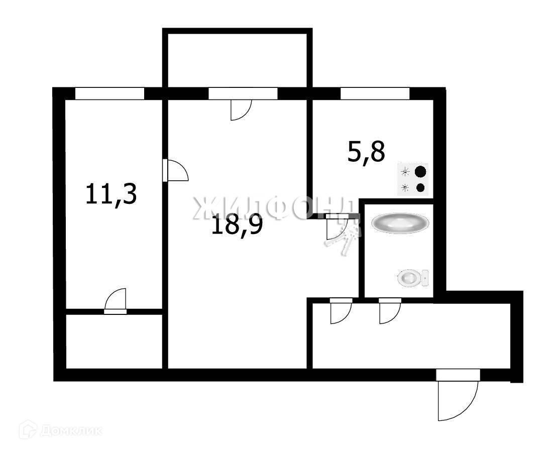 2-комнатная квартира, 46.5 м2, этаж 5 / 5, на продажу в Новосибирске, улица Ольги Жилиной, 92А