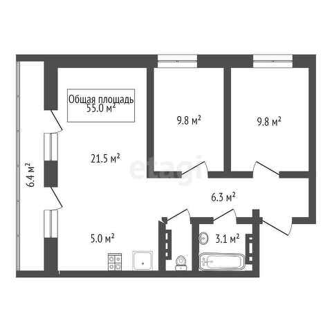 Общая площадь 62 м2