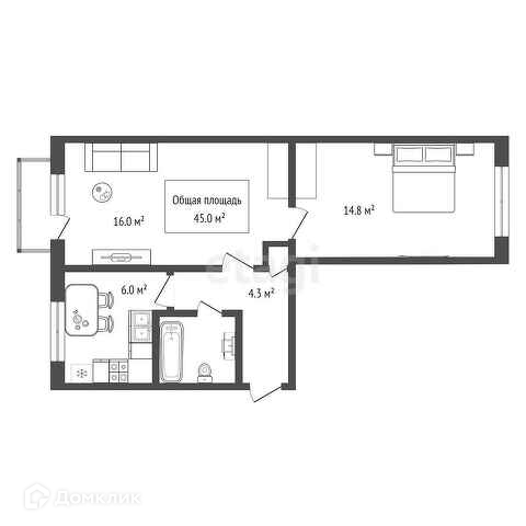 Общая площадь 45 м2