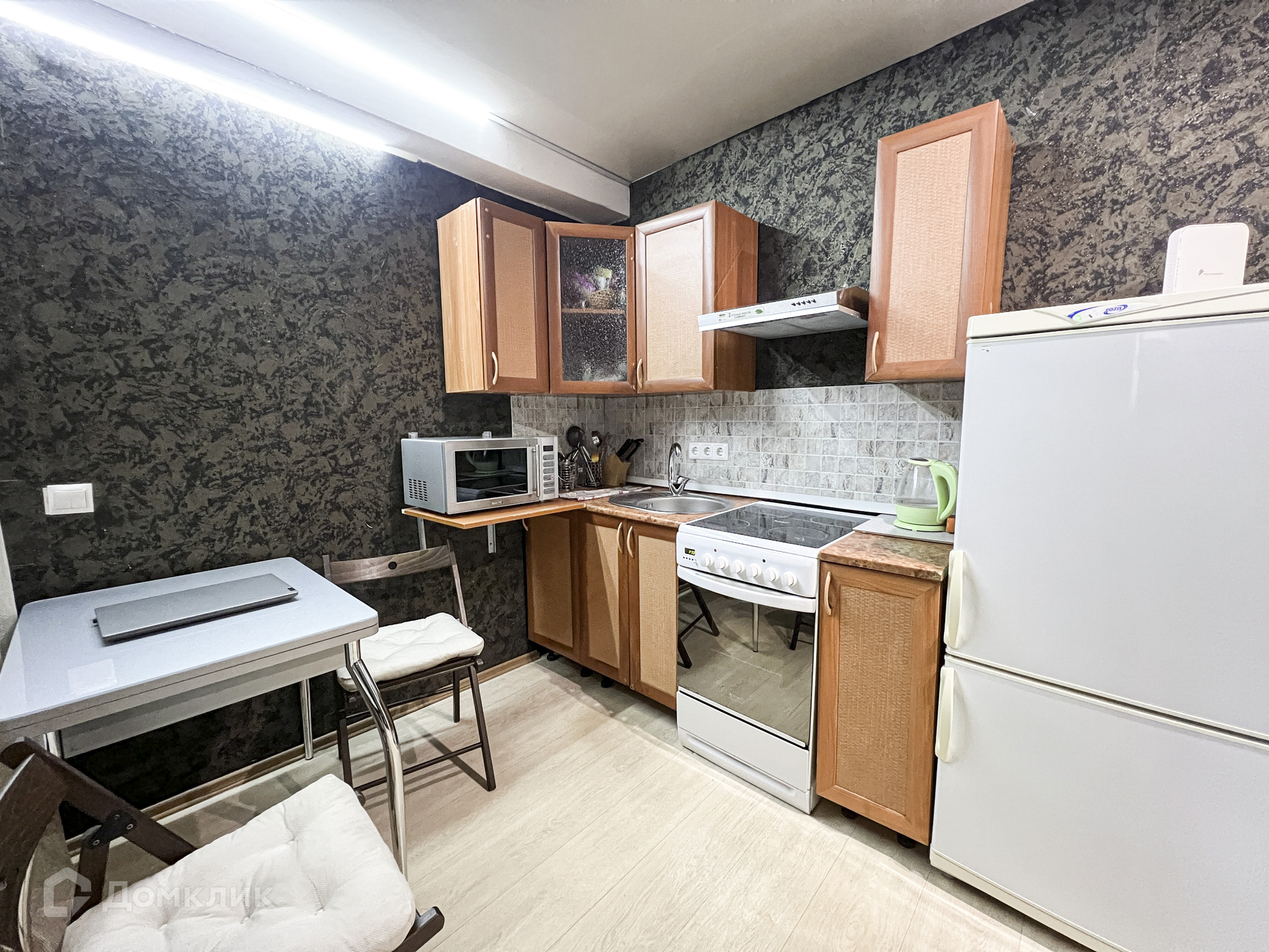 Состояние квартиры отличное. Сделан свежий ремонт - линолеум хорошего качества, натяжной потолок, обои.